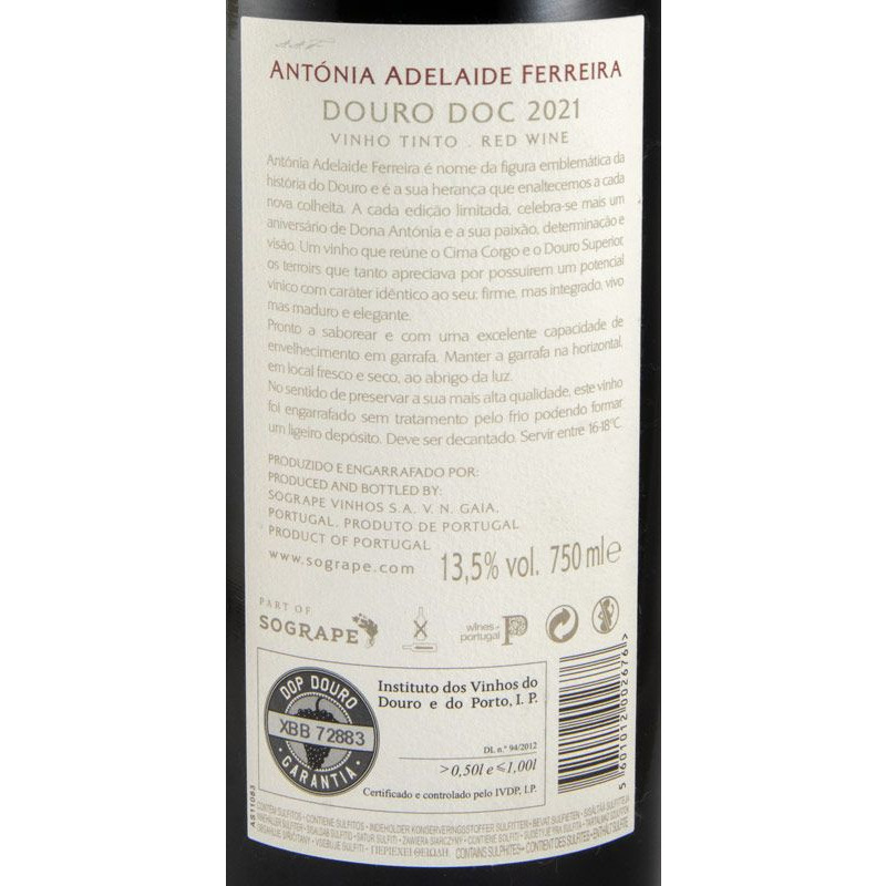 Este vinho presta homenagem à figura icónica da história do Douro, Antónia Adelaide Ferreira, celebrando a sua herança, paixão, determinação e visão. É um vinho firme, maduro e elegante, produzido com uvas de dois terroirs com características distintas, Cima Corgo e Douro Superior.