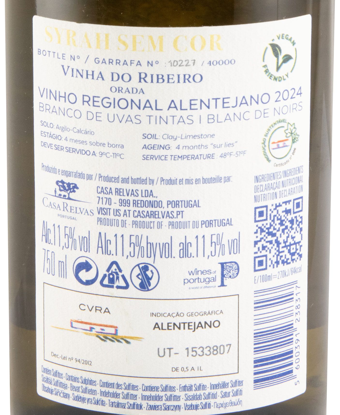 O Casa Relvas Syrah Sem Cor branco é um blanc de noir que revela a casta Syrah na sua expressão mais elegante. No aroma, destacam-se notas frescas de pêssego, damasco, maçã verde, pera e cítricos, envolvidas por delicadas nuances florais. Na boca, surpreende pela acidez equilibrada, toque mineral e leve salinidade.