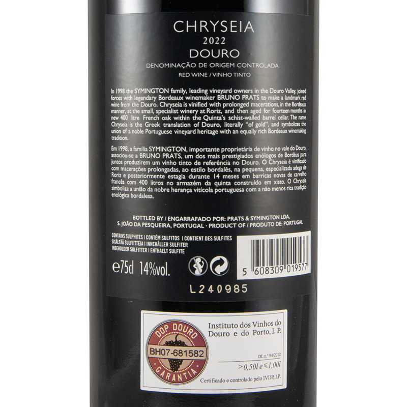 Em Novembro de 1998, a família Symington propôs a Bruno Prats a participação num novo projecto, que consistia em produzir um grande vinho não fortificado no Douro. A sua concretização deu-se em 1999, com a criação da PRATS & SYMINGTON Limitada como uma parceria equitativa entre as duas famílias. Algumas vinificações experimentais nesse primeiro ano permitiram definir e escolher as melhores parcelas e as castas mais adequadas para o projecto. O CHRYSEIA 2000 foi a primeira colheita a ser comercializada.