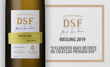 O elemento mais recente da Colecção Privada DSF acaba de chegar ao mercado. O Colecção Privada DSF Riesling 2019 é um vinho branco que se junta aos já existentes Colecção Privada DSF Verdelho, Colecção Privada DSF Sauvignon Blanc, Colecção Privada DSF Moscatel Roxo Rosé, Colecção Privada DSF Syrah Tannat, Colecção Privada DSF Touriga Francesa, Colecção Privada DSF Moscatel de Setúbal 2002 e Colecção Privada DSF Moscatel Roxo 2002. Esta gama de vinhos traduz na perfeição o compromisso e o empenho que Domingos Soares Franco impõe nas suas criações.