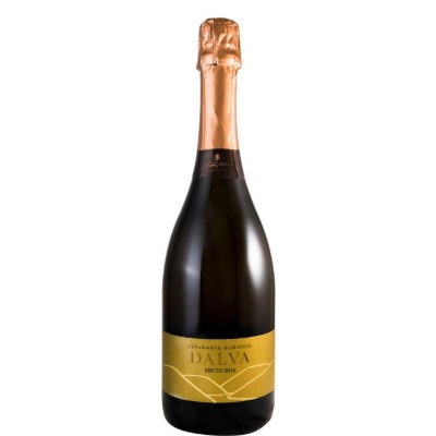 • Garrafa de espumante DALVA com rótulo amarelo e tampa cobre