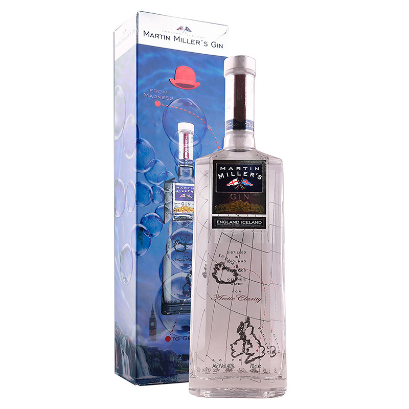 Um dia, Martin Millers estava a um beber gin tónico com amigos num pub de Londres e reparou na falta de cuidado e qualidade com que era servida a bebida. Martin perguntou: “é assim que é servida a bebida nacional da Inglaterra? Sabem o que vou fazer? vou fazer o meu próprio gin!” Assim disse e assim fez. Martin Millers não quis apenas fazer mais um Gin no meio da “new wave” de gins, quis fazer o melhor Gin de todos. Para isso não olhou a meios para atingir os fins. Inovou nos métodos de destilação – separou os ingredientes para obter um sabor mais intenso de cada um – e o mais importante, usou a água mais pura de todas. E onde está a água mais pura de todas? Na Islândia. Soube Martin que a água da Islândia não tem qualquer poluição e é a mais suave que existe. Foi exactamente a agua das nascentes da Islândia que Martin Millers escolheu para o seu Gin. Não se assustou com a distancia e já que aa água não podia viajar para a destilaria, levou a produção final dos ingredientes do gin desde Inglaterra até à Islândia onde o gin é engarrafado. Modo de servir: O mais usual é servir o gin tónico com o gin martin millers com uma casca de limão e sementes de zimbro ligeiramente exprimidas.