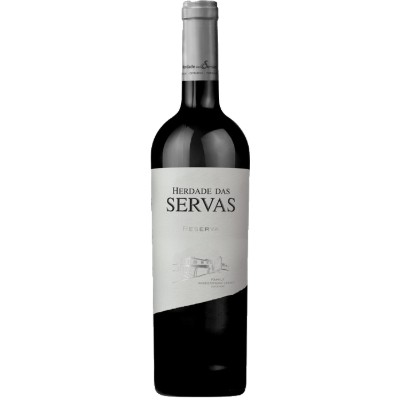 • Garrafa de vinho tinto Herdade das Servas Reserva com rótulo branco