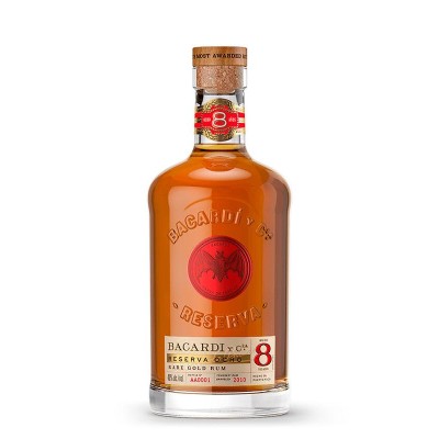 Rum Bacardi 8 Anos é originalmente uma bebida particular da família Bacardi, é o rum mais sofisticado e complexo da família dos runs Bacardi. É envelhecido durante 8 anos em pequenos cascos de carvalho cuidadosamente seleccionados, amadurecido até se tornar o rum mais requintado e suave do mundo. O Bacardi 8 Anos de com ambar, é extraordinariamente aromático com aroma de damasco, baunilha e noz moscada.
