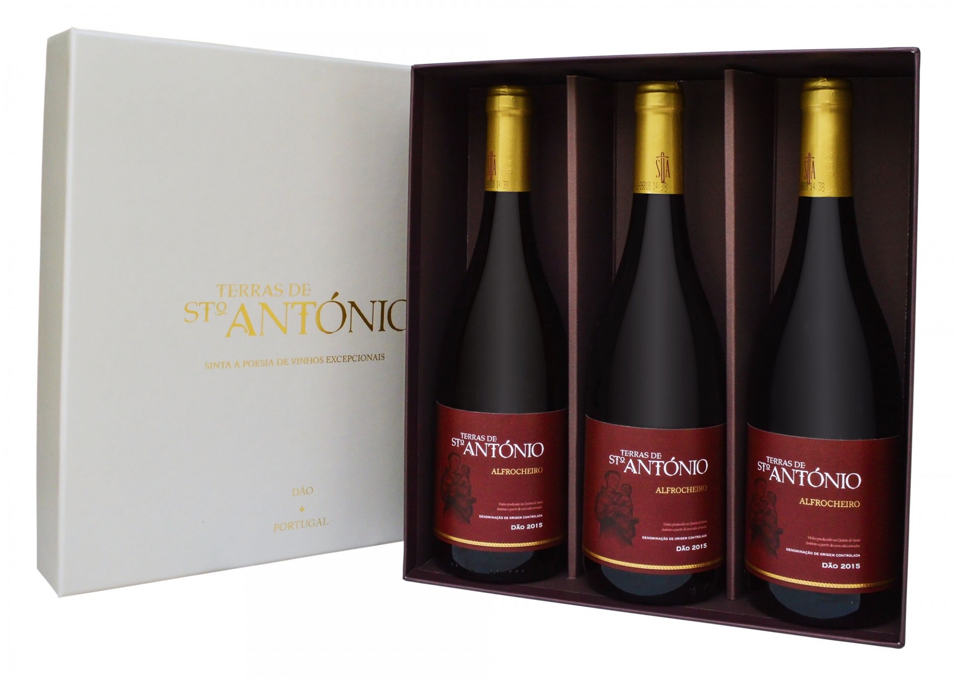 Elaborado exclusivamente com uvas da casta Alfrocheiro provenientes de vinhas com aproximadamente 40 anos, o Terras de Stº António Alfrocheiro exibe cor vermelha rubi.